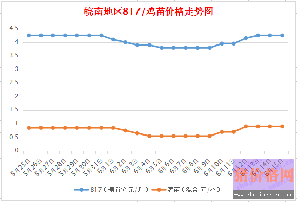 皖南地區(qū)817/雞苗價(jià)格走勢圖(圖表來源:雞病專業(yè)網(wǎng))