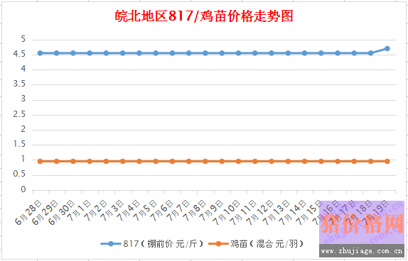 皖北地區(qū)817/雞苗價(jià)格走勢圖(圖表來源:雞病專業(yè)網(wǎng))
