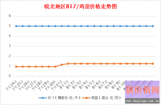 皖北地區(qū)817/雞苗價(jià)格走勢(shì)圖(圖表來源:雞病專業(yè)網(wǎng))