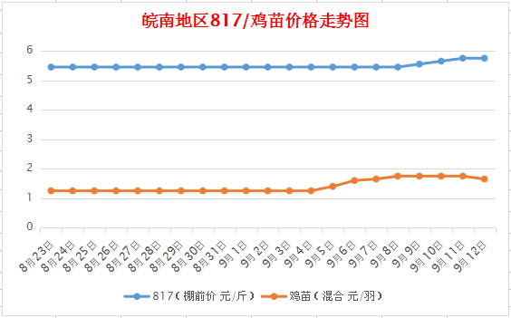 皖南地區(qū)817/雞苗價格走勢圖(圖表來源:雞病專業(yè)網(wǎng))