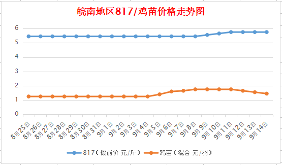 皖南地區(qū)817/雞苗價格走勢圖(圖表來源:雞病專業(yè)網(wǎng))