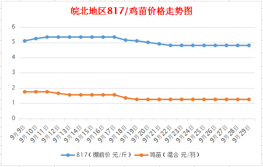 皖北地區(qū)817/雞苗價(jià)格走勢(shì)圖(圖表來源:雞病專業(yè)網(wǎng))