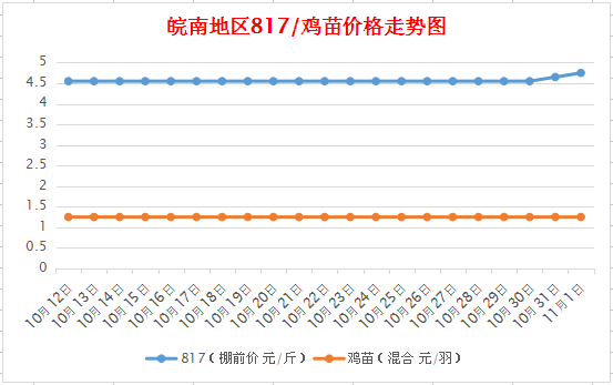 皖南地區(qū)817/雞苗價(jià)格走勢圖(圖表來源:雞病專業(yè)網(wǎng))