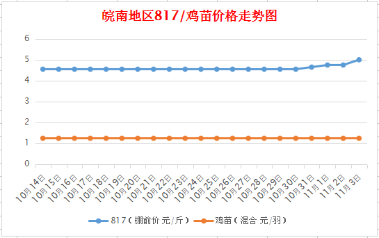 皖南地區(qū)817/雞苗價格走勢圖(圖表來源:雞病專業(yè)網(wǎng))
