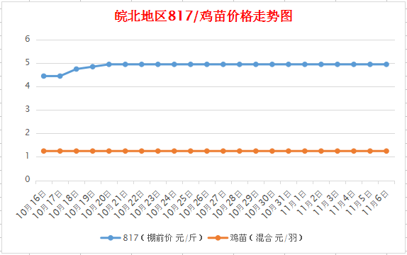 皖北地區(qū)817/雞苗價(jià)格走勢圖(圖表來源:雞病專業(yè)網(wǎng))