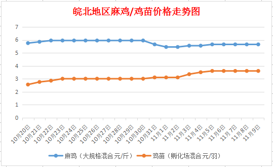 2018年11月8日-9日皖北地區(qū)817-麻雞行情最新走勢