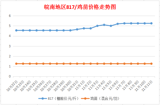皖南地區(qū)817/雞苗價格走勢圖(圖表來源:雞病專業(yè)網(wǎng))
