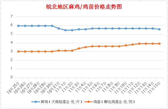 2018年11月14日-15日皖北地區(qū)817-麻雞行情最新走勢