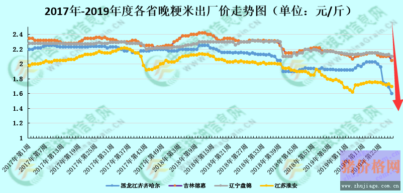 另外江蘇產(chǎn)區(qū)18年產(chǎn)晚粳米價格在東北陳米以及淡季的影響,其價格也穩(wěn)中走低,現(xiàn)階段主流出廠報價在1.7-1.75元/斤,下跌0.02-0.03元/斤,山東產(chǎn)區(qū)米企反映走貨速度放緩。截止到7月2日,專場稻谷拍賣成交量達(dá)到389萬噸,雖然專場稻谷拍賣中,黑龍江投放總量已大幅減量,下周之后(7月16日)是否會恢復(fù)拍賣無法判斷,但整體市場處于供大于求的格局是不爭的事實(shí),后續(xù)還將有陳稻虧損出售的現(xiàn)象出現(xiàn),按目前市場陳稻流通的情況來看,目前已成交的稻谷至少還有1/3以上未出庫,七月下旬產(chǎn)區(qū)陳粳米價格跌至1.60元/斤以內(nèi)的可能性非常大。