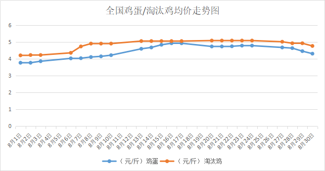 江蘇地區(qū):宿遷沭陽(yáng)紅蛋散筐大碼4.43元/斤,落,淘汰雞4.7-4.8元/斤;
