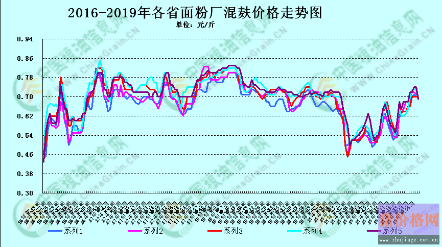 進入11月份以來,麩皮市場從價格堅挺開始轉向頹廢,銷售情況從購銷平衡到略有剩余,下游需求逐步減緩,之前面粉加工企業(yè)開機低、產(chǎn)量少,隨產(chǎn)隨銷、供不應求,目前則是火爆場面遇冷,制粉企業(yè)有心挺價但也無力回天,由于下游飼料廠等采購有所減弱,麩皮走貨變得緩慢,部分地區(qū)已跌破 0.7元/斤大關 (如圖所示)。再加上目前市場上供應的玉米麩皮、玉米胚芽粕、米糠等各種麩皮替代產(chǎn)品較多,因此當麩皮價格過高時,飼料廠、養(yǎng)殖戶等可以選擇其他替代產(chǎn)品,同時近期部分地區(qū)的制粉企業(yè)的面粉銷售有所好轉后,開機也隨之升溫,因而麩皮的產(chǎn)量較前期也會有所增加,而下游需求在減弱。難么麩皮價格是否會出現(xiàn)深跌呢?中國糧油信息網(wǎng)分析師張艷秋認為近期麩皮價格雖然有緩跌行情,市場進入需求淡季,預計近期麩皮市場將延續(xù)弱勢格局,但短期混麩價格很難跌破0.60元/斤的關口,具體原因如下所述。