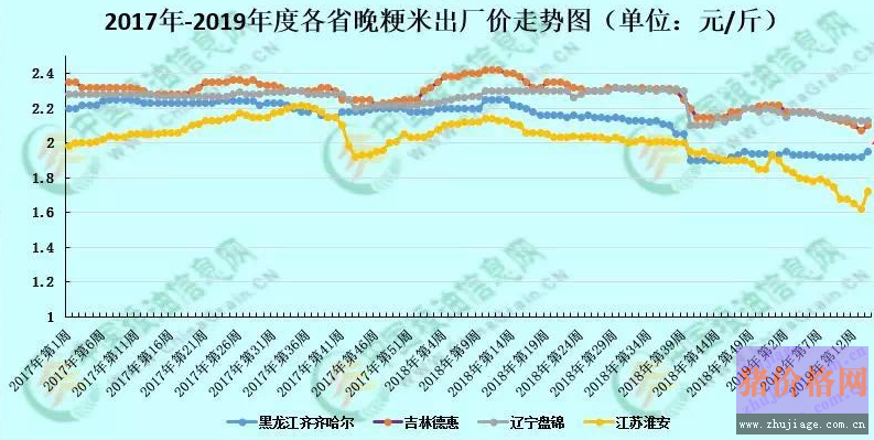 當(dāng)下已步入大米消費淡季是不庸置疑。東北產(chǎn)區(qū)基層糧源逐漸見底,特別是黑龍江產(chǎn)區(qū)普通圓粒水稻更是難求,其中佳木斯地區(qū)18年產(chǎn)普通圓粒水稻售價已達(dá)到1.43-1.45元/斤,出米率70%。受此影響部分河北、江蘇產(chǎn)區(qū)原糧倒流至東北米企的現(xiàn)象也較為普遍,普通圓粒水稻實際到廠價格約1.35-1.36元/斤,水份16,出米率70%上,在國家臨儲未拍賣之前,稻價繼續(xù)上漲空間有限,主要是稻價雖高,但米企采購的積極性低,隨著天氣氣溫逐漸升高,無論經(jīng)銷商提貨熱情或是大米終端消費都將萎縮,米價還是維持平穩(wěn)走勢,如下圖所示。江蘇產(chǎn)區(qū)稻價逐漸形成兩級分化走勢,優(yōu)質(zhì)優(yōu)價,進入五月份后麥?zhǔn)杖掌谂R近,部分貿(mào)易商及農(nóng)戶將面臨騰倉收糧,不得不出售庫存稻谷。同時由于該省稻子水份普遍偏大,部分雨后稻子已出現(xiàn)發(fā)黃、色澤暗淡的現(xiàn)象將影響稻價進一步的上漲。