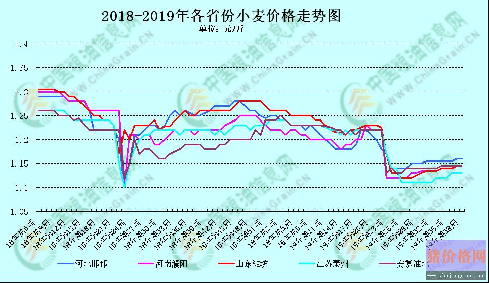 托市進入尾聲,購銷轉(zhuǎn)向清淡。夏糧收儲已進行3個多月的時間了,目前大多數(shù)糧庫已完成收儲任務(wù),僅有個別糧庫由于開庫時間晚還在收儲,但對整體行情影響也十分有限。9月份,受雙節(jié)效應(yīng)的影響,制粉企業(yè)小麥采購增加,再加之市場流通糧源同比減少,主產(chǎn)區(qū)新小麥?zhǔn)召弮r格整體延續(xù)穩(wěn)中上漲態(tài)勢。中秋節(jié)過后,由于制粉企業(yè)主要以消耗前期備貨庫存為主,小麥采購需求有所下降,再加之國家政策性收購接近尾聲,主產(chǎn)區(qū)小麥價格大多趨向穩(wěn)定。局部價格雖有小幅波動,但上漲幅度明顯較前期縮窄。整體來看,小麥價格在近期已經(jīng)開始趨穩(wěn),預(yù)計短期不會出現(xiàn)大幅調(diào)價的可能。
