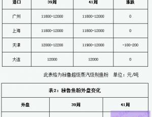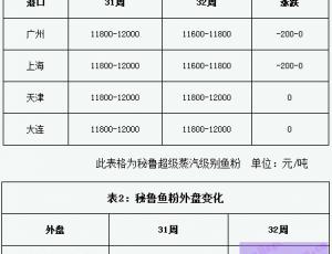 天津港市場報價穩(wěn)定為主,近期當(dāng)?shù)孛佤斊胀?a href=http://www.zztianrui.cn/jiage/yufen/ target=_blank class=infotextkey>魚粉參考報價在12000~12100元/噸,泰國級魚粉新貨參考報價在12300~12400元/噸左右,秘魯日本級新貨參考報價在13000~13100元/噸,秘魯超級蒸汽魚粉部分貿(mào)易商新貨參考報價在13800~13900元/噸,陳貨報價在12900-13100元|噸,當(dāng)前魚粉市場交投轉(zhuǎn)為一般。