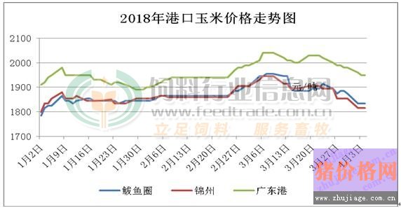 當?shù)赜衩踪Q(mào)易商擔心后期利潤縮水,走貨情緒明顯增加,市場供應趨于寬松,企業(yè)收購量能夠滿足日常生產(chǎn)所需,加工企業(yè)庫存明顯恢復,不再急于提價吸引上量,收購價格全面下調(diào),整體幅度相對東北更大。截止本周二山東諸城興貿(mào)收購價格為1920元/噸,較3月底下跌60元/噸;濰坊英軒玉米收購價格1950元/噸,較3月底下跌26元/噸;寧晉玉鋒玉米收購價格1920元/噸,較3月底下跌40元/噸;驪驊淀粉玉米收購價格1810元/噸,較3月底下跌40元/噸。