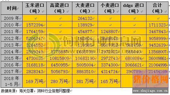 受國(guó)內(nèi)外價(jià)差的影響,近年來玉米及替代品進(jìn)口逐年增加。玉米及進(jìn)口谷物的大量進(jìn)口,擠占了國(guó)內(nèi)玉米消費(fèi)市場(chǎng),一定程度增加了玉米去庫(kù)存壓力。海關(guān)總署發(fā)布的數(shù)據(jù)顯示,2017年玉米進(jìn)口總量2825448噸,同比下降10.78%。但是2017年下半年國(guó)內(nèi)玉米價(jià)格走高,國(guó)內(nèi)外價(jià)差持續(xù)拉大,給進(jìn)口玉米大量涌入創(chuàng)造了條件。根據(jù)海關(guān)總數(shù)發(fā)布的數(shù)據(jù)顯示,2018年5月份我國(guó)玉米進(jìn)口量76萬(wàn)噸,同比增長(zhǎng)1684%。5月份高粱進(jìn)口量47萬(wàn)噸,同比增長(zhǎng)59%;大麥進(jìn)口量77萬(wàn)噸,同比增長(zhǎng)了23.3%。谷物進(jìn)口量明顯上升,與中美貿(mào)易戰(zhàn)升級(jí)也有很大的關(guān)系,進(jìn)口貿(mào)易企業(yè)提前采購(gòu),若中國(guó)自7月6日起對(duì)原產(chǎn)于美國(guó)的進(jìn)口高粱加征25%的關(guān)稅,自美國(guó)進(jìn)口的農(nóng)產(chǎn)品成本將攀升,預(yù)計(jì)后期原產(chǎn)于美國(guó)的谷物類進(jìn)口量將趨于下降。