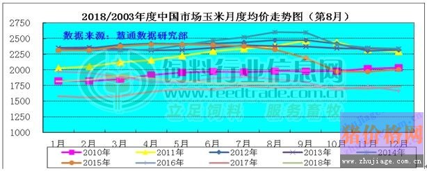 圖表:2018年8月中國玉米月度價格走勢圖(單位:元/噸)