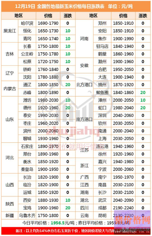 數(shù)據(jù)顯示:12月19日國(guó)內(nèi)玉米市場(chǎng)繼續(xù)穩(wěn)中偏弱運(yùn)行,部分地區(qū)玉米價(jià)格較昨日下調(diào)10-20元/噸,北方產(chǎn)區(qū)依舊領(lǐng)跌全國(guó)。