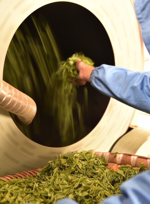 墨脫縣茶廠員工加工新鮮茶葉(4月6日攝)。