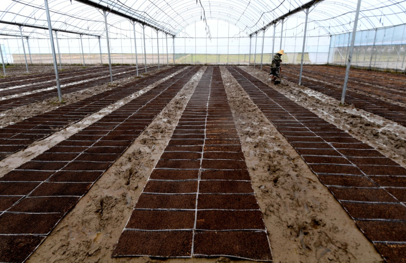 4月11日,樟樹市農(nóng)作物新品種展示示范場的員工在工廠化集中育秧基地管護(hù)秧盤。