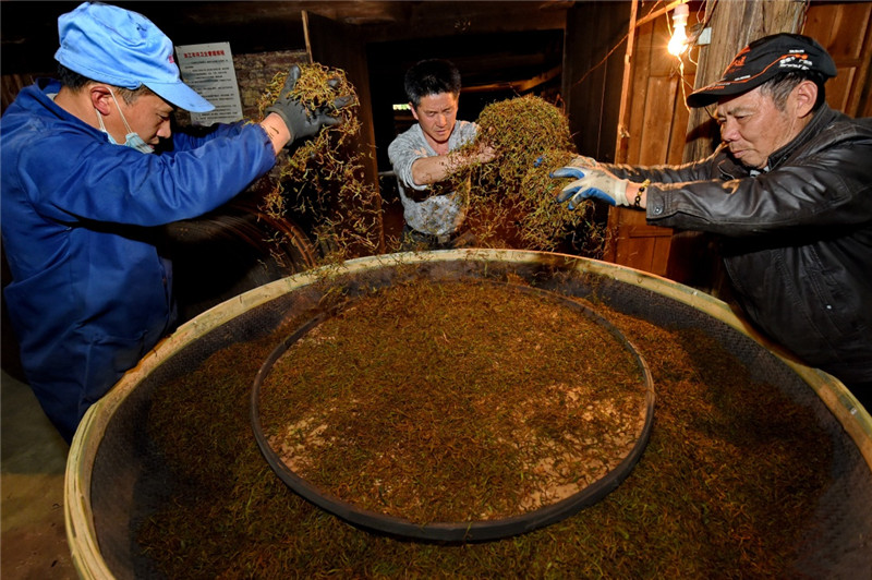 武夷山桐木村茶農(nóng)在制作正山小種紅茶(4月11日攝)。