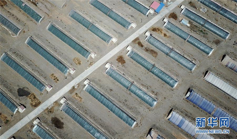 這是已經(jīng)投入使用的甘肅省酒泉市肅州區(qū)總寨戈壁農(nóng)業(yè)產(chǎn)業(yè)園的高效節(jié)水日光溫室(4月18日攝)。