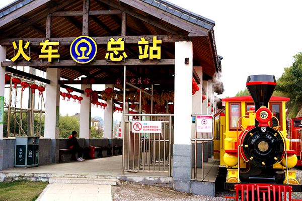 ▲ “嗚——”,觀光小火車正載著游客從火車總站出發(fā)。一條全長4.5公里的鐵軌,巧妙將村里18個家庭農(nóng)場串聯(lián)起來,方便游客到達各個農(nóng)場參觀游玩。