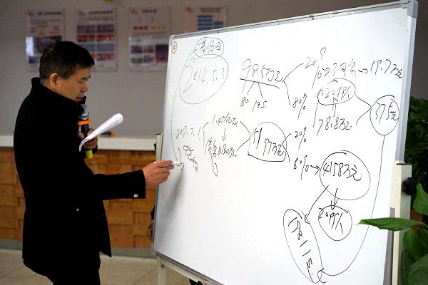 ▲ 村民代表大會上,魯家村黨委書記朱仁斌詳細向村民股東們介紹村集體資產(chǎn)的增值情況:從2014每股價值375元,到2017年每股價值1.9811萬元,三年間翻了53倍。