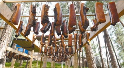 圖為晾曬的臘肉。
