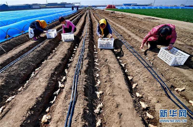 4月20日,唐山市豐潤(rùn)區(qū)新軍屯鎮(zhèn)新軍屯村農(nóng)民在播種生姜。