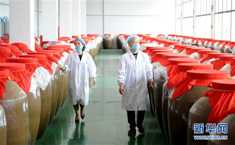 4月21日,在貴州省鎮(zhèn)遠(yuǎn)縣青溪鎮(zhèn)一家花酒公司,工人在檢查玫瑰花酒發(fā)酵情況。