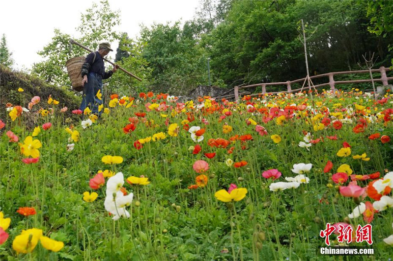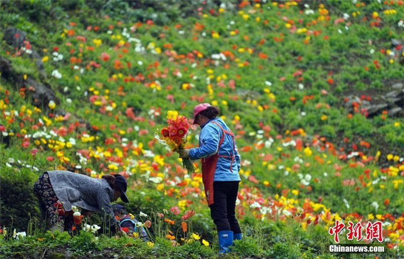 4月23日,農(nóng)民在汶川縣水磨鎮(zhèn)仁吉喜目谷景區(qū)勞作。
