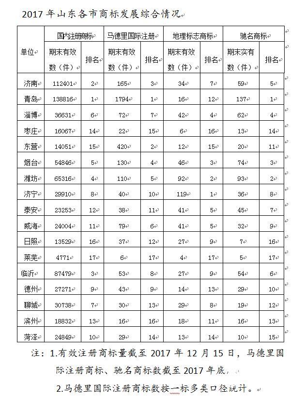 4月23日上午,記者從山東省政府新聞辦新聞發(fā)布會上了解到,近年來,山東積極開展“商標(biāo)助企大走訪”“一企一標(biāo)”“一村一標(biāo)”等活動,引導(dǎo)各類市場主體等強(qiáng)化商標(biāo)品牌意識,全省各類市場主體實(shí)施商標(biāo)品牌戰(zhàn)略積極性進(jìn)一步提升,截至2017年底,全省擁有地理標(biāo)志商標(biāo)582件,位居全國第一。