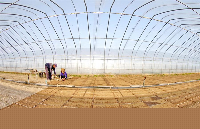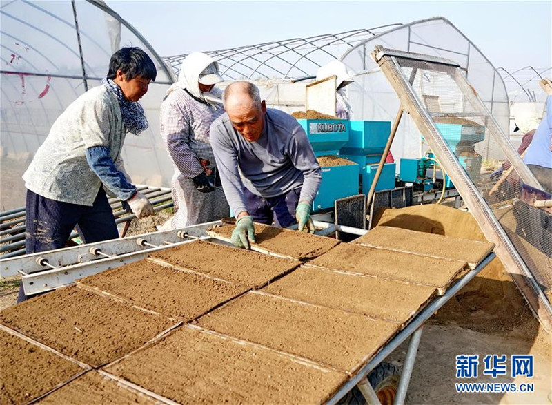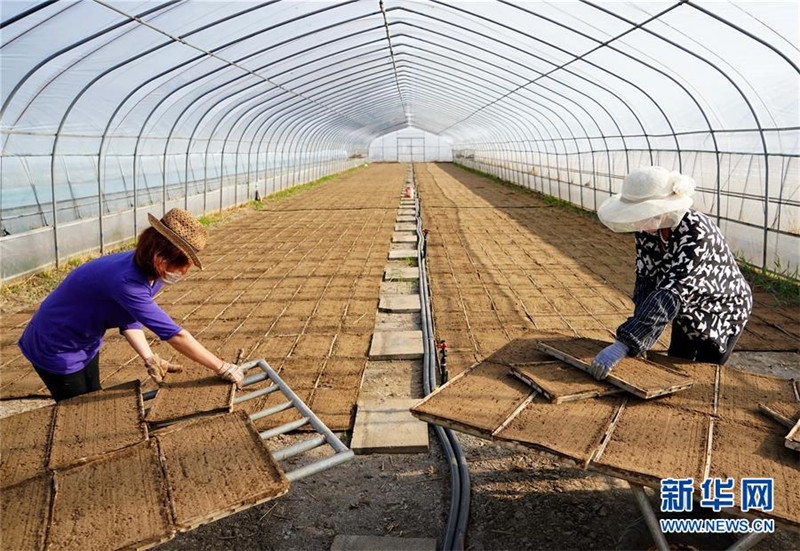 4月25日,唐山市海港經(jīng)濟(jì)開發(fā)區(qū)王灘鎮(zhèn)農(nóng)民在育秧棚內(nèi)碼放秧盤。