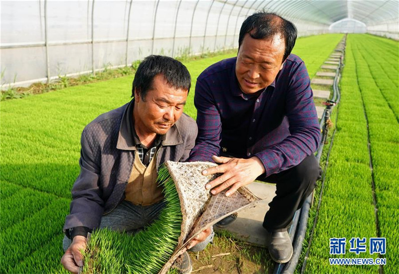 4月25日,唐山市海港經(jīng)濟(jì)開發(fā)區(qū)王灘鎮(zhèn)農(nóng)民在查看秧苗的發(fā)根情況。