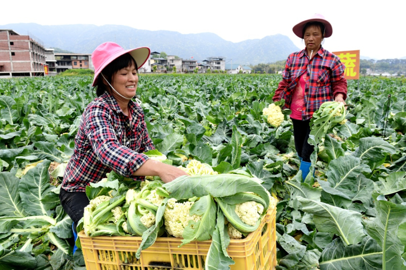 4月26日,永泰縣丹云鄉(xiāng)丹云村村民在采收花菜。