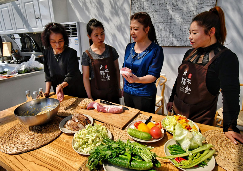 后黑龍廟村的農(nóng)民在學習廚藝(4月28日攝)。