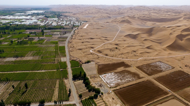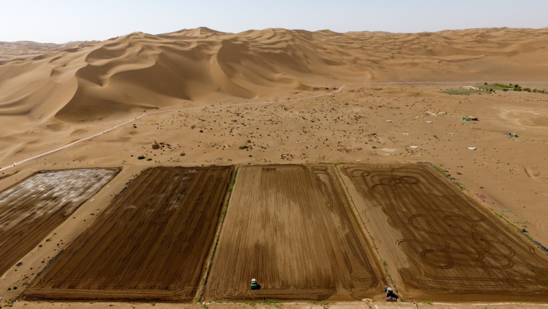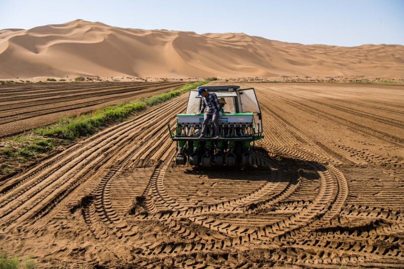 當(dāng)日,在位于新疆庫(kù)木塔格沙漠邊的鄯善縣辟展鄉(xiāng),從東北引進(jìn)的新型旱稻品種正在開播。據(jù)稻種研發(fā)人彭國(guó)威介紹,這種旱稻適應(yīng)性強(qiáng),采用旱田直播技術(shù),結(jié)合新疆當(dāng)?shù)厣衬貐^(qū)純凈的沙土和特殊的氣候,可產(chǎn)出優(yōu)質(zhì)綠色的有機(jī)大米。新華社記者 江文耀 攝