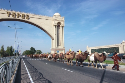 涇盛裕·絲綢之路文化之旅仿古商隊(duì)走進(jìn)哈薩克斯坦最大城市阿拉木圖。