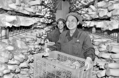 圖為近日員工正在采收杏鮑菇。