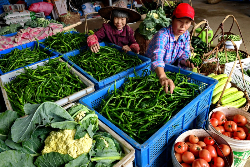 5月11日,村民在上梅鄉(xiāng)農(nóng)民創(chuàng)業(yè)園的蔬果種植基地裝運(yùn)蔬菜。