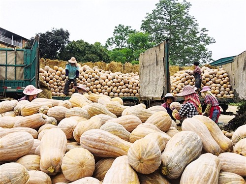 金陵鎮(zhèn)南瓜豐收,農(nóng)民忙著裝車外銷。