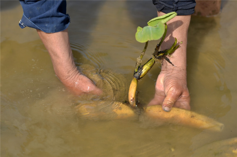 眼下正值河北省隆堯縣澤畔村蓮藕種植時節(jié),藕田里到處是農(nóng)民忙碌的身影。澤畔村種藕歷史悠久,目前全村蓮藕種植面積達300余畝,每畝收入可達2萬余元。新華社記者 牟宇 攝