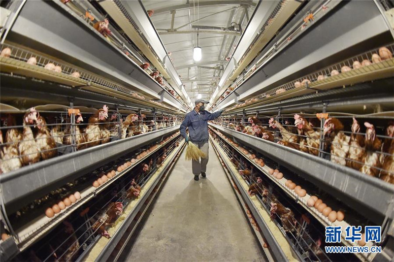 地處寧夏青銅峽市邵崗鎮(zhèn)甘城子村2000畝戈壁灘上的順寶生態(tài)循環(huán)養(yǎng)雞產(chǎn)業(yè)園通過十幾年科技創(chuàng)新、產(chǎn)業(yè)鏈延伸發(fā)展,構(gòu)建起一套完整的生態(tài)蛋雞養(yǎng)殖循環(huán)產(chǎn)業(yè)鏈。據(jù)了解,園區(qū)蛋雞存欄量達(dá)到100萬羽,年產(chǎn)鮮蛋1.44萬噸的同時進行雞糞肥料化利用,生產(chǎn)液體及固體生物有機肥1.6萬噸。整個園區(qū)通過建立飼料加工、蛋雞養(yǎng)殖、雞肉加工、雞糞生物有機肥加工、有機種植、農(nóng)業(yè)廢棄物資源化利用和生物菌劑應(yīng)用等環(huán)節(jié)的產(chǎn)業(yè)鏈條,實現(xiàn)了蛋雞養(yǎng)殖產(chǎn)業(yè)的生態(tài)循環(huán)發(fā)展模式。該園區(qū)還建成3個“扶貧車間”,解決了周邊200多名移民群眾的就業(yè)問題,員工人均年收入超過4.5萬元。新華社記者 王鵬 攝