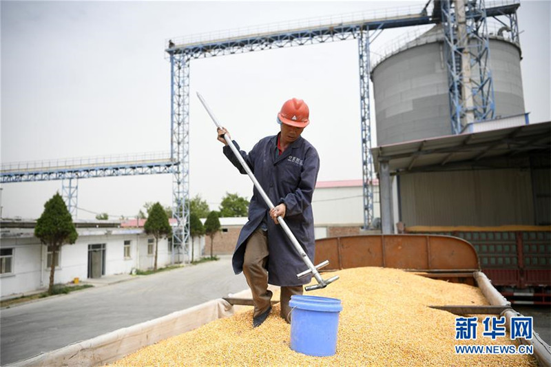 順寶生態(tài)循環(huán)養(yǎng)雞產(chǎn)業(yè)園工作人員在對飼料玉米進行抽樣檢測(5月9日攝)。