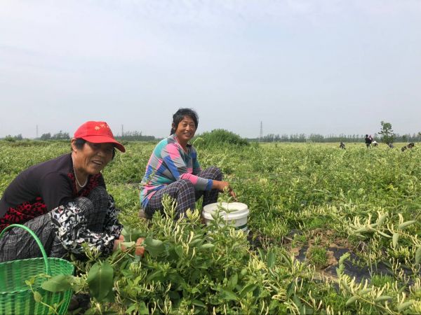 目前金銀花長勢良好,現(xiàn)已進入采摘旺季。記者在冒店村走訪時看到,30多位村民正在采摘金銀花。冒店村村民陳金蘭和韓萬群已在金銀花示范基地摘了4天花!鞍硞5點多就來摘金銀花,趕早能多掙錢,連續(xù)采摘一茬花,能賺千把塊錢呢。”“俺老兩口和俺孫女一起來摘,小半天摘了20來斤!66歲村民沈守強開心地說。一朵朵金銀花,變成村民的“致富花”。附近村莊的一些中老年農(nóng)民前來這里摘花,實現(xiàn)家門口就業(yè),村民們滿臉喜悅,將采摘的鮮花送到地頭稱重、記錄,領(lǐng)取工錢。金銀花叩開了致富之門,為村民帶來“真金白銀”。