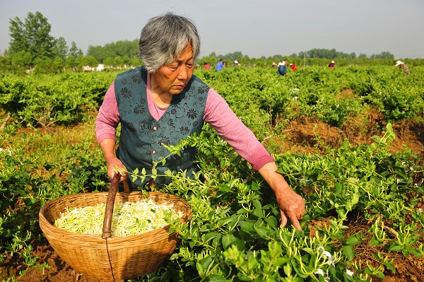 位于河南省淅川縣九重鎮(zhèn)唐王橋村的福森萬畝金銀花基地采用“公司+基地+農(nóng)戶”的農(nóng)業(yè)種植帶動脫貧模式,由公司統(tǒng)一提供種苗、統(tǒng)一指導管理、統(tǒng)一收購服務,在全縣推廣種植5萬余畝金銀花。目前,該基地共輻射帶動基地周邊23個村2000余人就近務工,350多戶貧困農(nóng)戶通過土地租賃、就地務工和訂單金銀花等形式實現(xiàn)了脫貧致富。