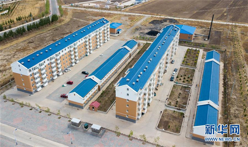 5月21日無人機(jī)航拍的內(nèi)蒙古興安盟烏蘭浩特市葛根廟鎮(zhèn)建設(shè)的移民搬遷樓。