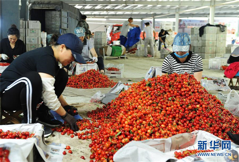 近年來,山東省煙臺市福山區(qū)張格莊鎮(zhèn)在推進(jìn)鄉(xiāng)村振興工作中,依托本地資源優(yōu)勢,大力發(fā)展櫻桃產(chǎn)業(yè),形成集櫻桃種植、交易、物流、采摘、旅游等于一身的產(chǎn)業(yè)鏈。2017年,張格莊鎮(zhèn)櫻桃種植面積達(dá)2萬畝,成交量達(dá)3萬噸,農(nóng)民人均可支配收入超過2萬元。櫻桃產(chǎn)業(yè)成為張格莊鎮(zhèn)鄉(xiāng)村振興的支柱產(chǎn)業(yè)。新華社記者 任鵬飛 攝