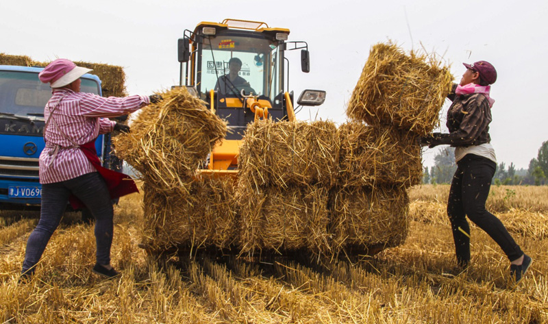 “三夏”時(shí)節(jié),河北省永清縣在小麥豐收的同時(shí)大力推廣小麥秸稈回收,將回收秸稈用于農(nóng)業(yè)種植養(yǎng)殖、生物質(zhì)發(fā)電等領(lǐng)域,有效提高了秸稈利用率,增加農(nóng)民經(jīng)濟(jì)收入。新華社記者 李曉果 攝